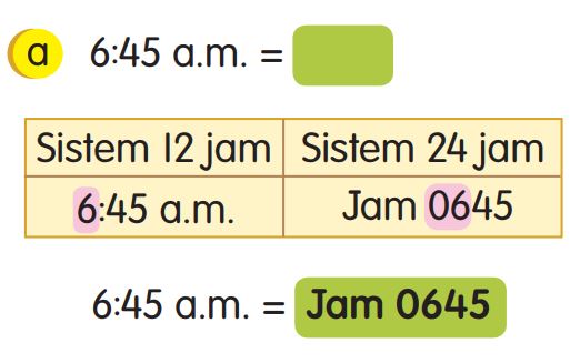 Latih tubi penukaran waktu dalam sistem 12 jam kepada sistem 24 jam dan sebaliknya.